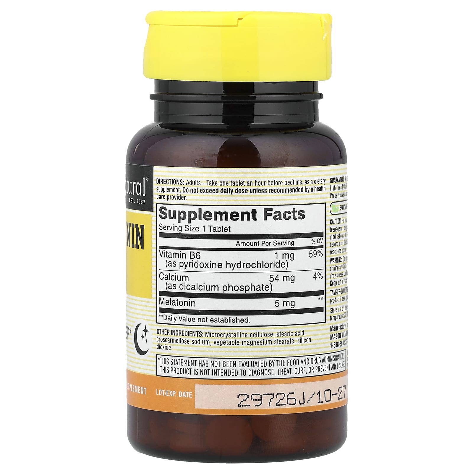 Mason Natural Melatonin provides 5 mg of melatonin per tablet, a hormone naturally produced by the body that helps regulate the sleep-wake cycle. Melatonin supplements are commonly included in routines focused on sleep support and maintaining a consistent nighttime schedule.